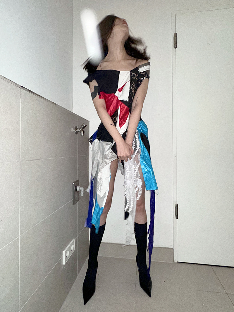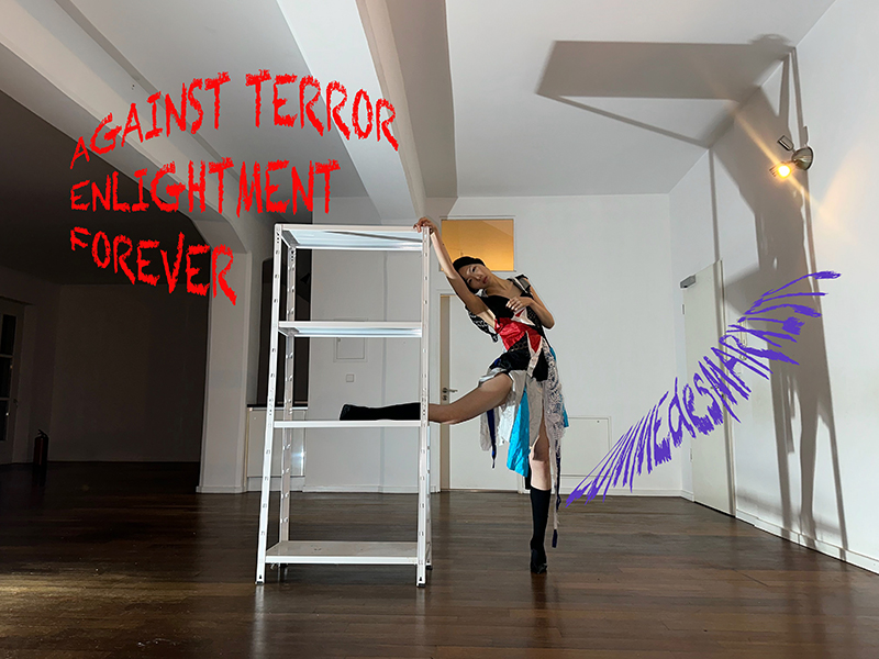doesn't that remind you of a form of execution jump board -- a shadow fight over territory and modes of being --- save the planet with read couture and show the colors of the revoution and for freedom - sustainability and proper mutual understanding without wars - done in a site that was curxial during the 20th century -- near Stalin / Marx allee BERLIN