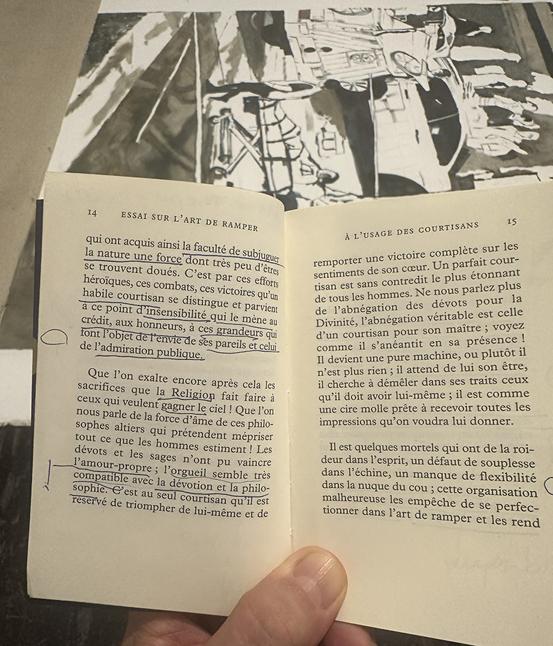 Holbach was a genius of his time, he not only studied in Holland and experienced an ugly war that had to do with the Habsbourg Austrian Monarchy ... he also made it as a layer to the service of the most powerful king in France before the Revolutiion of 1789 reinvented the state and its institution. He ran through his exact studies and observations and his double point of views into probelms with leading then and today authorities : fait and power structure but his texti was reading in French - addressed the qualities of a state servant, called at the time a Courtisan ,.... and his qualities... so interesting how he describes power and its mediums... the representatives and the servants and the qualities needed to handle such a job... meaning -- coolness and the questoin ... what is power, whio has it, and how does one keep everybody happy in particular in times of constant upheavals.... he is mostly know today as a man who had a SALON of the most intelligent people of his time and frequented such personal - he also dedicated his enourmous wealth he inherited from his banker adopted father in Paris to science and an epoque that came to be knows as the enlightening. Today we enlightened by exactly the opposite - an administration who wants to turn the clock back.... and create pain, bigotty and hatred. but the most venered medium was like today, writing and images were secondary but fact remained on the battle field and in court rooms. His texts were not uncontested. the Encyclopedia he co-edided and co-sponsored with Diderot and others is still a main reason why today, wiht AI and the scientific revolutions we witness ..... ;things go on